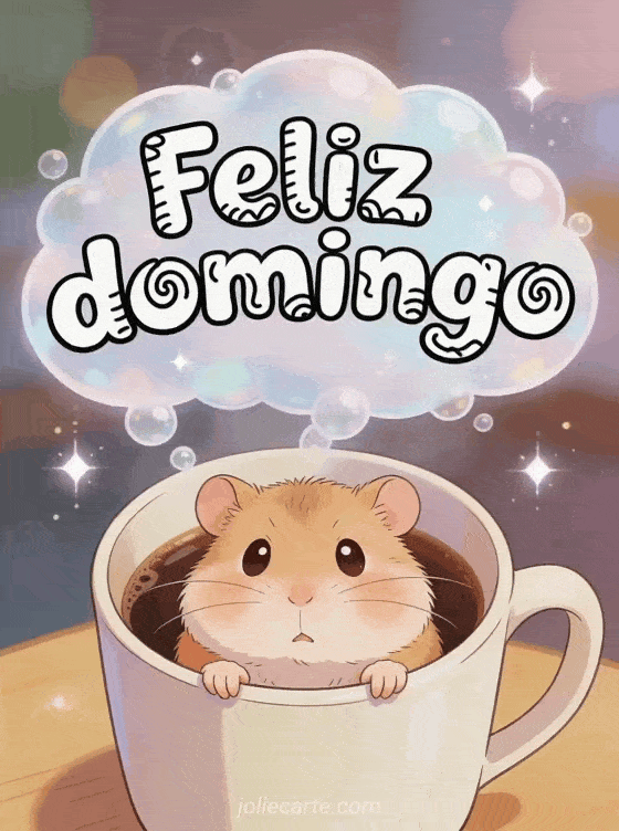 Comparte feliz domingo gif divertido con un hámster rechoncho atrapado en una taza de café y mirando confundido en una escena hilarante. Suma más sonrisas de domingo con bonita tarjeta virtual feliz domingo, ternura besos grandes feliz domingo besos gif o flores domingo.