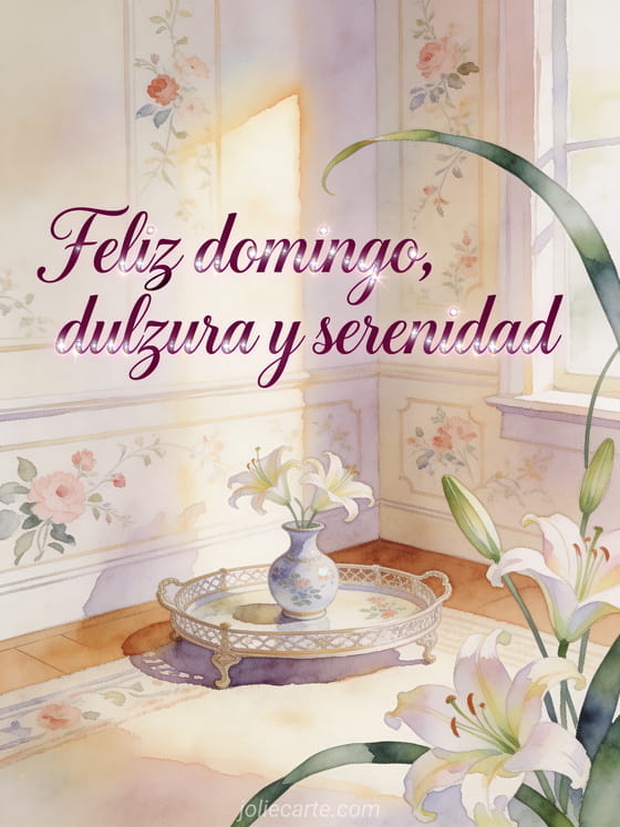 Comparte una tarjeta refinada de feliz domingo con una delicada bandeja de té, un jarrón de porcelana, lirios de día y luz cálida de domingo en un rincón floral interior. También puedes enviar feliz domingo gifs gratis, imágenes animadas para desear un feliz domingo o una feliz domingo cálido imagen.