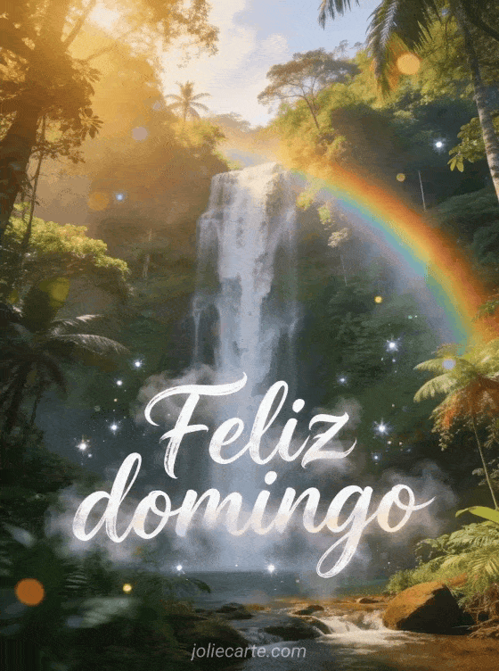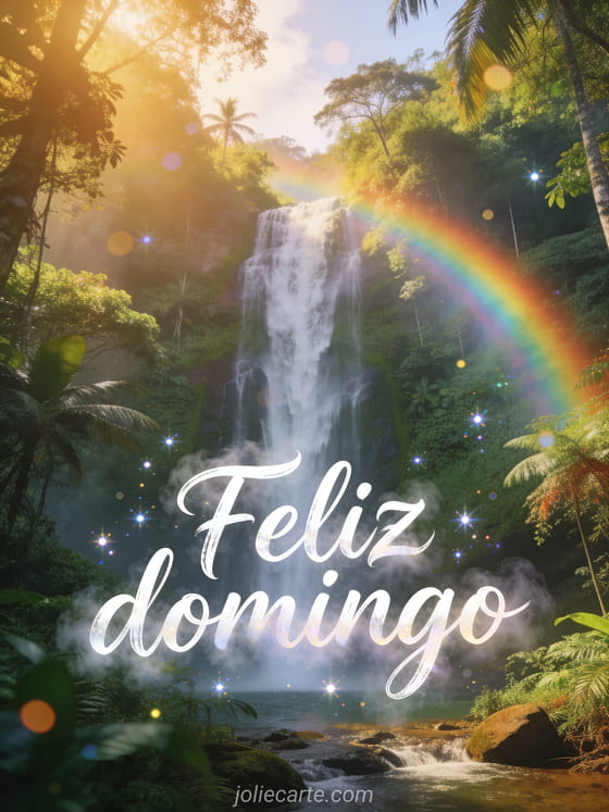 Envíen un hermoso saludo de feliz domingo con escritura artística, bruma de cascada, una cascada majestuosa en una selva tropical y un arcoíris. Descubran también color de cabello otoño invierno 2016, feliz domingo divertido gif o desear un feliz domingo.