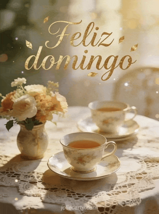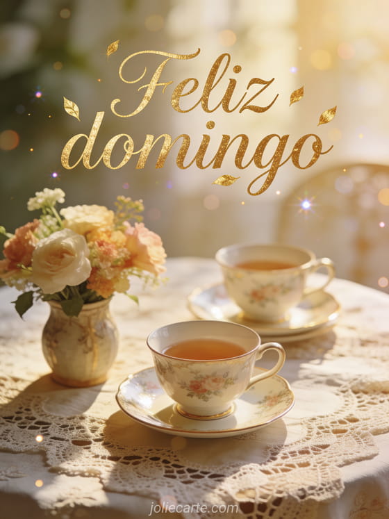 Feliz domingo un saludo refinado de domingo con té y flores