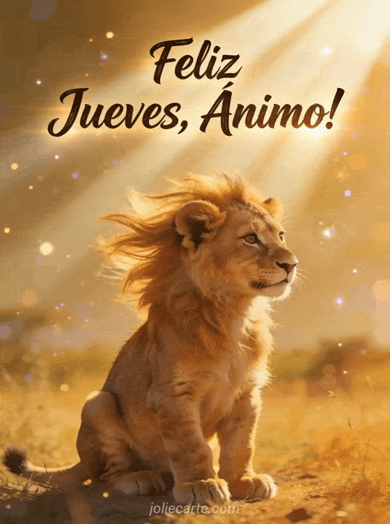 Comparte un poderoso saludo de jueves con un majestuoso leoncito sentado con orgullo bajo la dorada luz de la sabana. Descubre también una hermoso día de jueves o una feliz jueves zen.