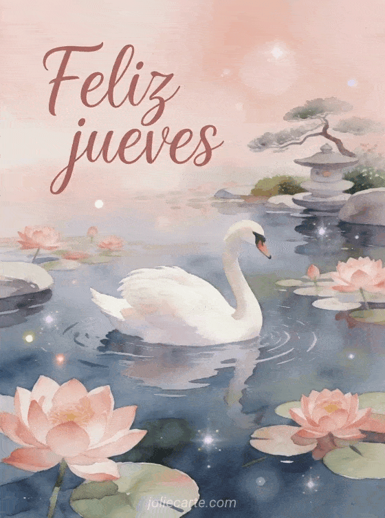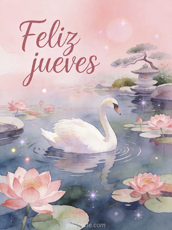 Comparte un feliz jueves lleno de calma con esta elegante tarjeta de cisne sobre un estanque tranquilo. Descubre también feliz jueves soleado, linda noche de jueves o feliz jueves imagen gratis.