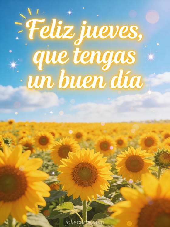 feliz jueves que tengas un buen día un deseo soleado de jueves en un campo de girasoles