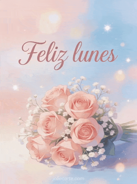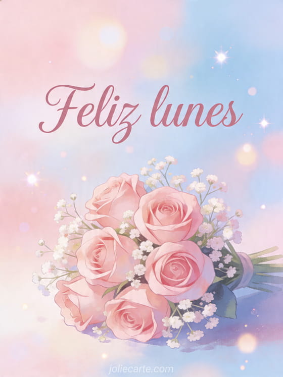 Envía una delicada tarjeta de Feliz lunes con rosas rosadas y paniculata para empezar con dulzura. Descubre también imagen feliz lunes y buena semana, café feliz lunes humor y lunes imagen buenos días.