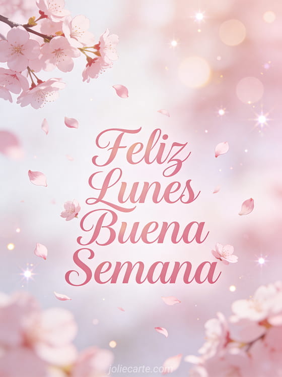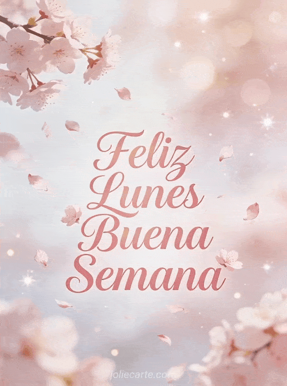 Comparte un dulce saludo de lunes con pétalos de cerezo y un mensaje lleno de ternura. Descubre también una feliz lunes y buena semana humor o una gif feliz lunes y buena semana.