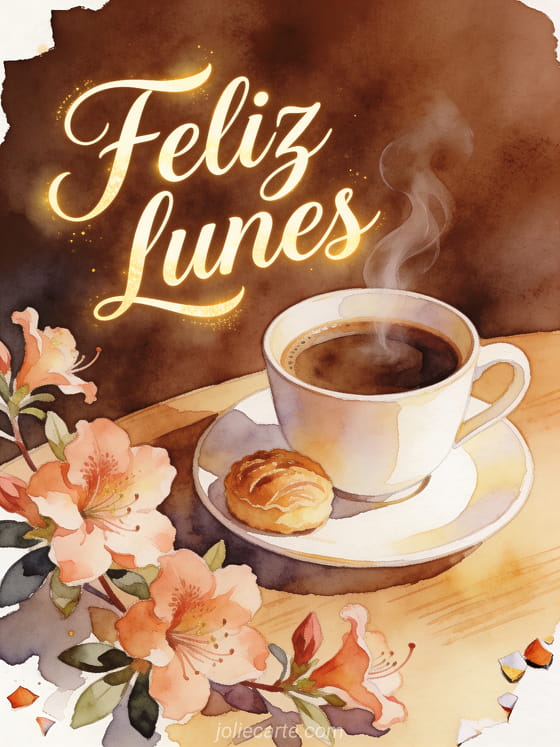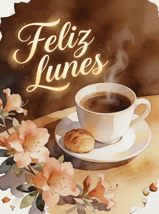 Empieza la semana con un cálido saludo de feliz lunes en acuarela, con una taza de café humeante, un pequeño pastelito y flores de azalea. También pueden compartir feliz lunes imagen floral, feliz lunes gifs animados o feliz lunes sol imagen.