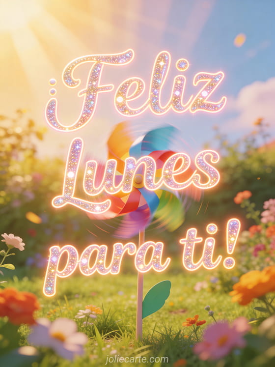 Envíen un saludo alegre de feliz lunes con un molinillo colorido en un jardín soleado. Descubran también una feliz lunes besos gif animado, unas imágenes gratis feliz lunes y buena semana o una buenos días lunes y buena semana.