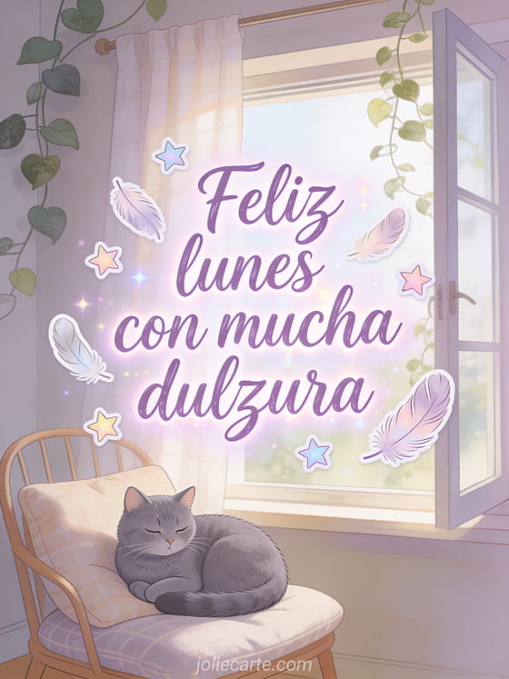 Feliz lunes con mucha dulzura un saludo suave de lunes con un gato acogedor
