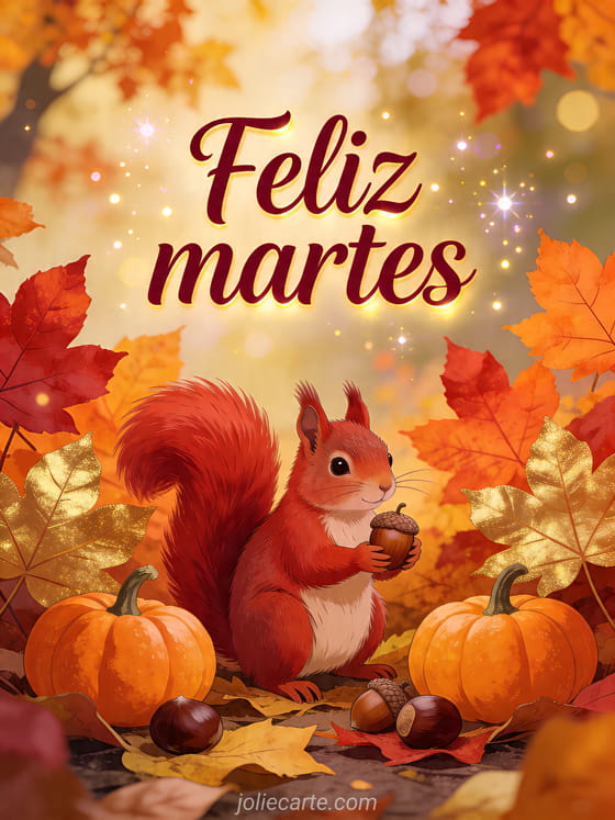 Comparte esta tarjeta de feliz martes para enviar un mensaje otoñal lleno de calidez. Descubre también un feliz martes, martes besitos gifs y linda tarjeta de feliz martes.