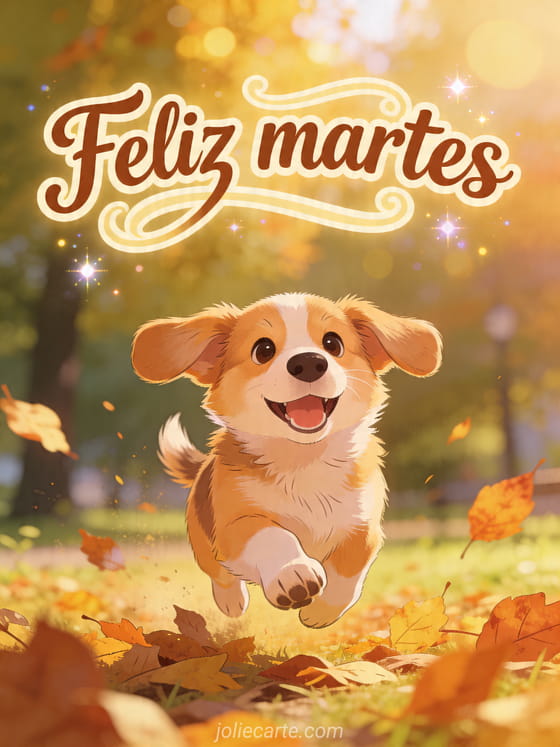 feliz martes un saludo juguetón de martes lleno de hojas de otoño y energía de cachorro