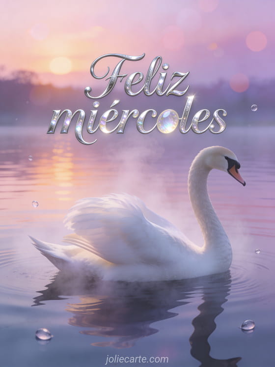 Envíen un elegante saludo de feliz miércoles con un cisne blanco deslizándose sobre un lago como espejo al amanecer, entre bruma suave y reflejos pastel. Descubran también feliz miércoles montaña, imágenes animadas feliz miércoles o buenos días es miércoles.