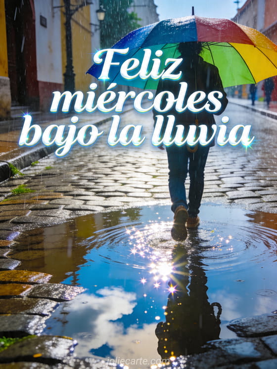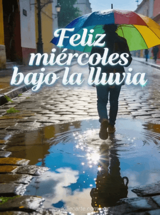 Feliz miércoles bajo la lluvia un saludo reconfortante de mitad de semana para días de lluvia