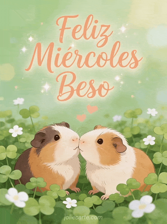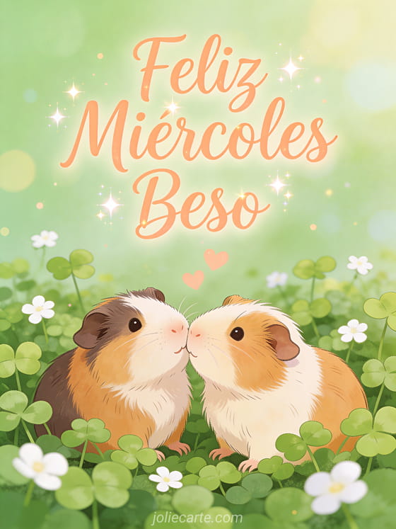 Comparte un dulce beso de miércoles con esta adorable tarjeta de dos cobayas frotando narices en un suave lecho de trébol. Descubre también una café buenos días feliz miércoles o una foto miércoles soleado.
