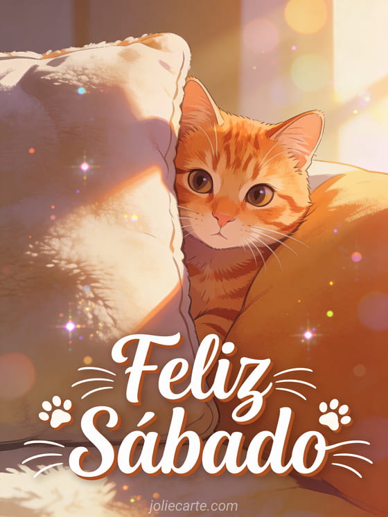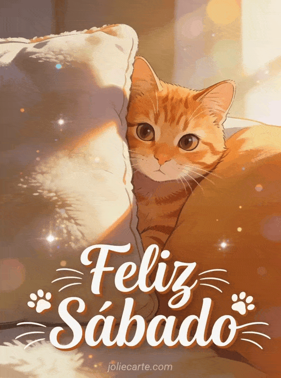 Comparte una juguetona mañana de sábado con un curioso gato atigrado pelirrojo asomándose por detrás de un cojín. Descubre también una feliz sábado bajo el sol o una buena jornada sábado.