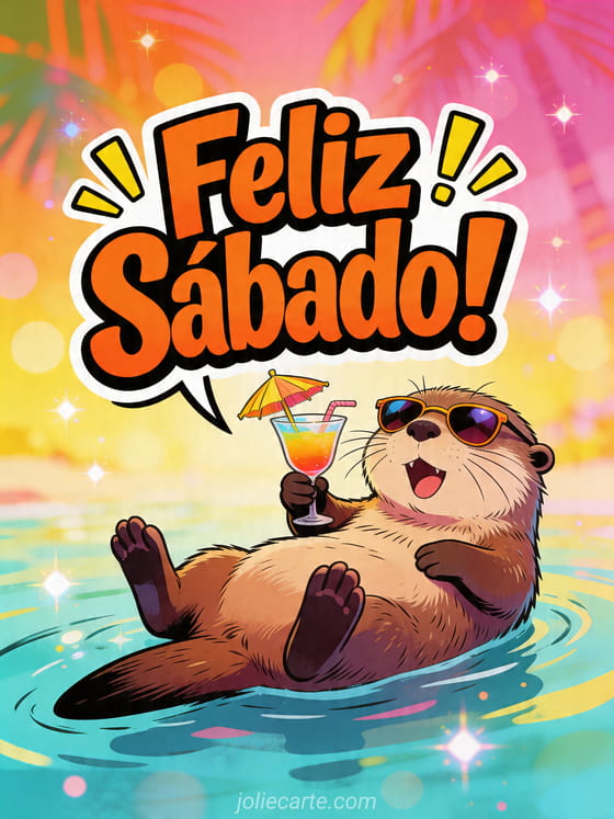 Saca una sonrisa con esta tarjeta de sábado que muestra a una nutria muy graciosa flotando boca arriba con gafas pequeñas y un cóctel bajo un ambiente tropical. También pueden descubrir linda noche de sábado, feliz sábado amigos o gracioso feliz sábado divertido.