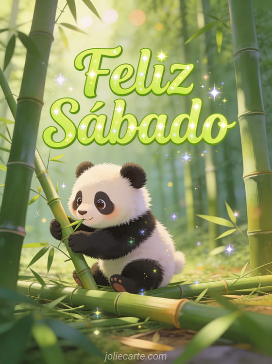 Comparte un juguetón saludo de sábado con esta adorable tarjeta con un cachorro de panda en un bosque de bambú. Descubre también una tarjeta buen café del sábado por la mañana o una tarjeta feliz sábado mi amiga.