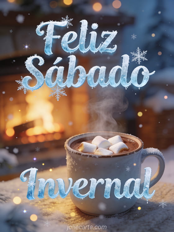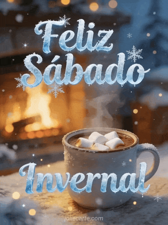 Celebra un acogedor sábado de invierno con esta cálida tarjeta con chocolate caliente con malvaviscos junto al resplandor de la chimenea en la luz de la mañana. Descubre también una feliz sábado y buen fin de semana con humor, un feliz sábado para ti o un gif feliz sábado.
