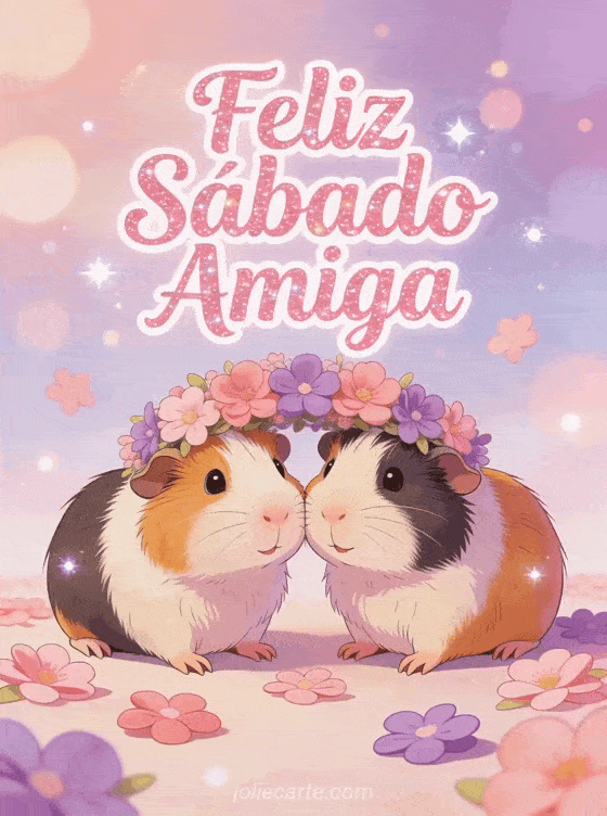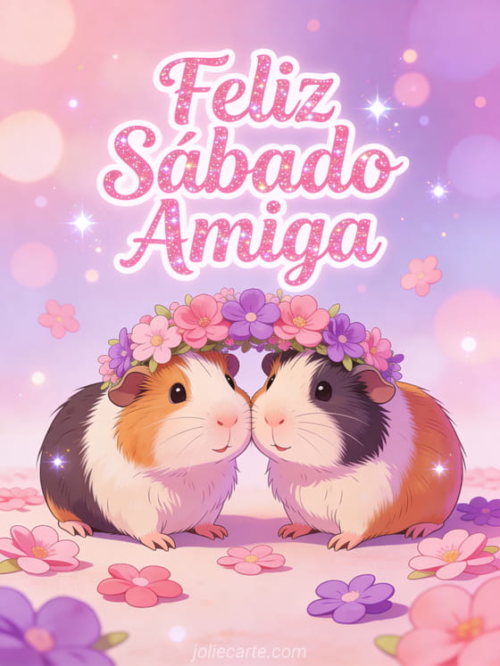 Celebra a tu amiguita este sábado con esta adorable tarjeta con dos cobayas compartiendo una corona de flores. Descubre también una tarjeta feliz sábado y buen día o una tarjeta feliz sábado cita positiva.
