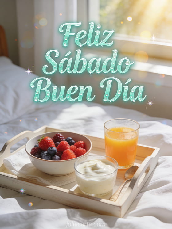 Desea a alguien un maravilloso sábado por la mañana con esta lujosa tarjeta de bandeja de desayuno. Descubre también una tarjeta feliz sábado cita positiva o una tarjeta feliz sábado imagen gratis.