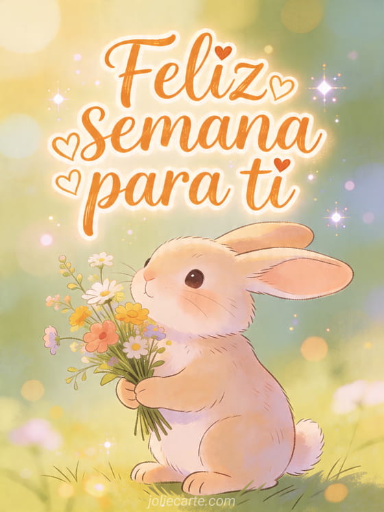Comparte un tierno deseo de feliz semana con esta adorable tarjeta de conejo. Descubre también buena semana besos, imágenes feliz semana o buena semana.