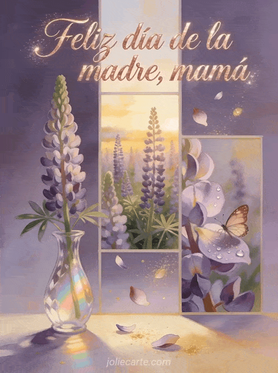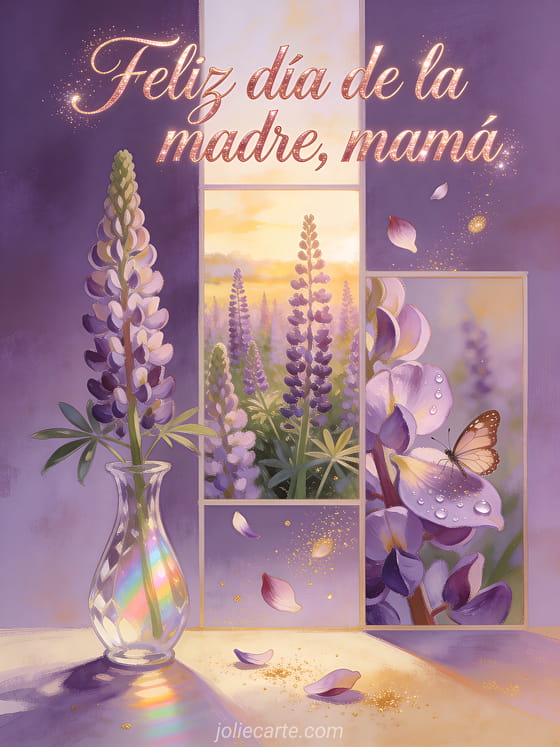 Comparte una tarjeta elegante con flores para el Día de la Madre inspirada en lupinos en flor. También pueden ver flores para el día de la madre, mermelada palabras dulces día de la madre y dibujo del día de la madre.