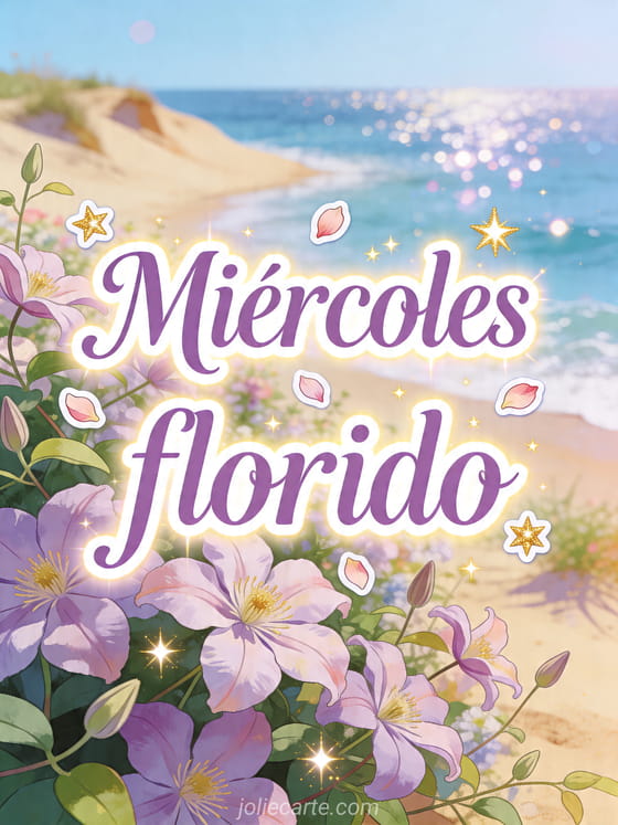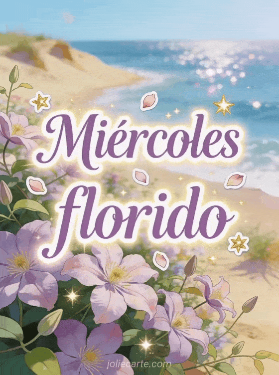Miércoles florido un saludo tierno de mitad de semana entre flores y mar