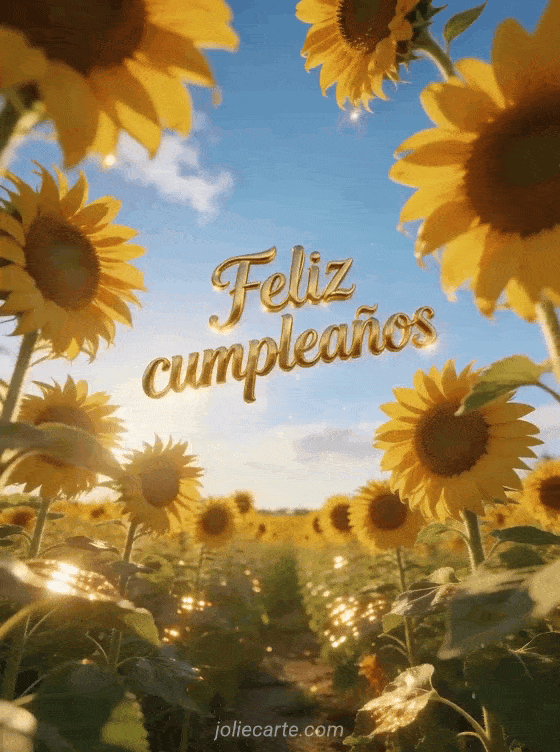 Feliz cumpleaños un alegre saludo de cumpleaños en un radiante campo de girasoles