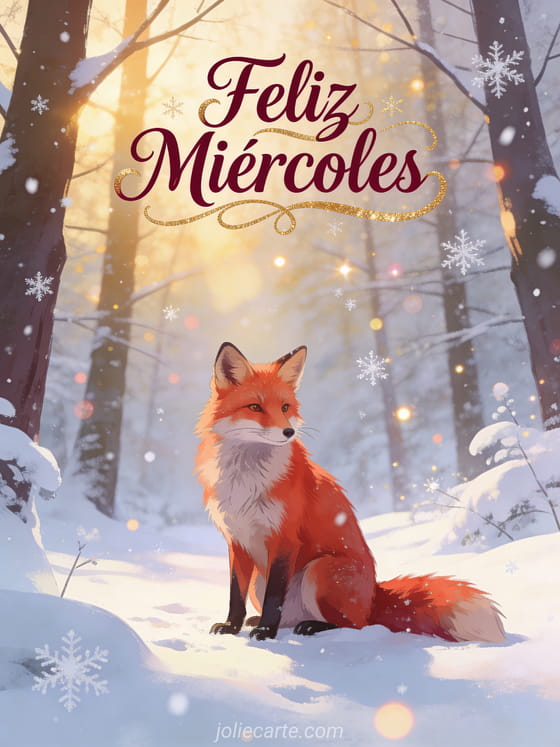 Comparte una mágica mañana de miércoles con esta impresionante tarjeta del zorro en la nieve. Descubre también una tarjeta feliz miércoles enero o una tarjeta buen miércoles.