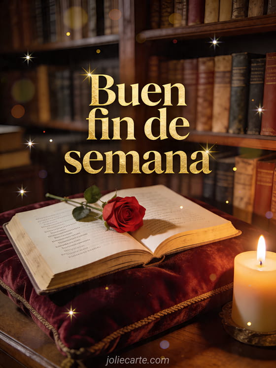 Envía esta tarjeta con una frase de buen fin de semana para compartir un deseo elegante y literario. Descubre también que tengan un buen fin de semana, buen fin de semana besos o buen fin de semana soleado gif.
