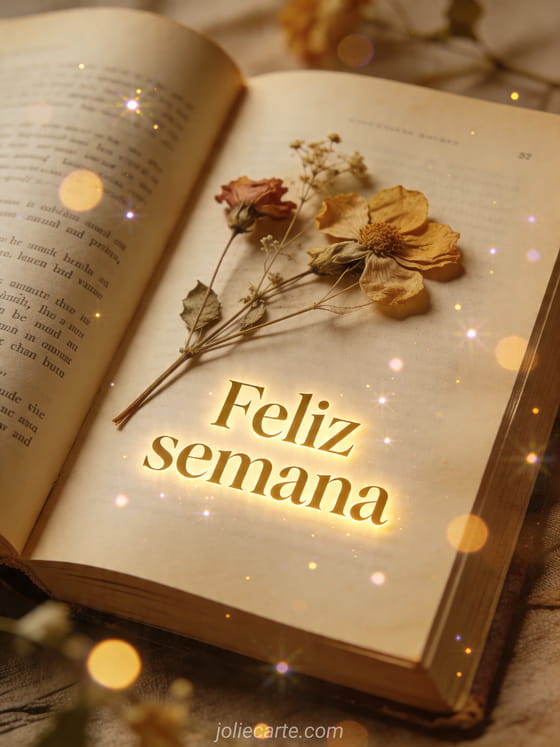 Comparte un deseo reflexivo de feliz semana con esta elegante tarjeta de libro vintage. Descubre también buenos días buena semana, feliz semana invernal con café caliente o hola y buena semana imagenes.