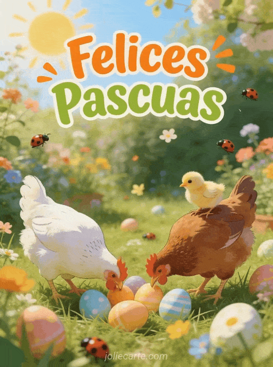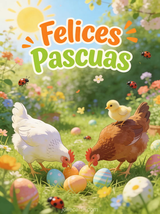 Comparte esta alegre tarjeta de gallinas de pascua y celebra la primavera. Descubre también una tarjeta de imagen conejo de pascua o una tarjeta de felices pascuas tierno.