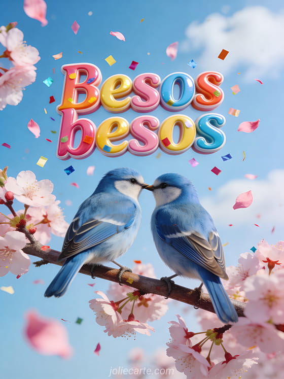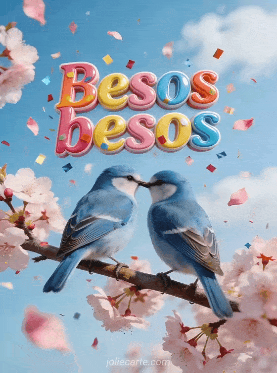 Gif besos besos una alegre explosión de besos con pájaros animados entre flores de cerezo