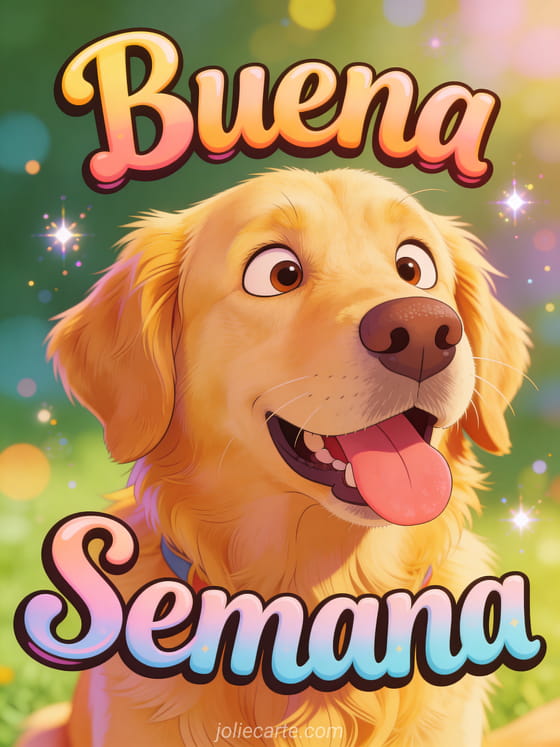 Envía un gif de buena semana con humor animado y haz reír a alguien. Un golden retriever con la lengua afuera y la mueca más graciosa es el deseo perfecto para una semana hilarante. Descubre también una tarjeta buen día y buena semana o una buena semana motivación.