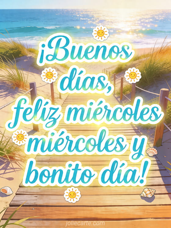 ¡Buenos días, feliz miércoles y bonito día! un saludo alegre de mitad de semana con sol y mar
