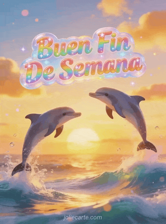 Gifs buen fin de semana un alegre saludo de fin de semana con delfines animados y destellos de arcoíris