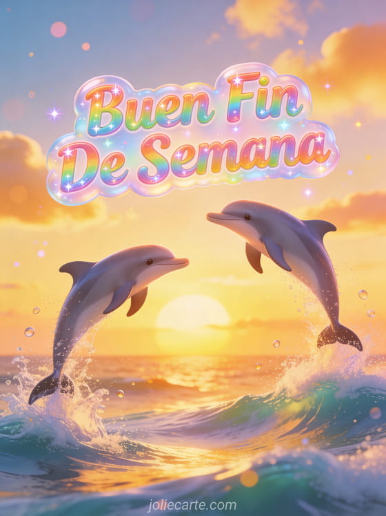 Alegra el fin de semana de alguien con esta tarjeta animada de buen fin de semana con delfines al atardecer. Descubre también una cita para desear un buen fin de semana o una desear un buen fin de semana con humor.