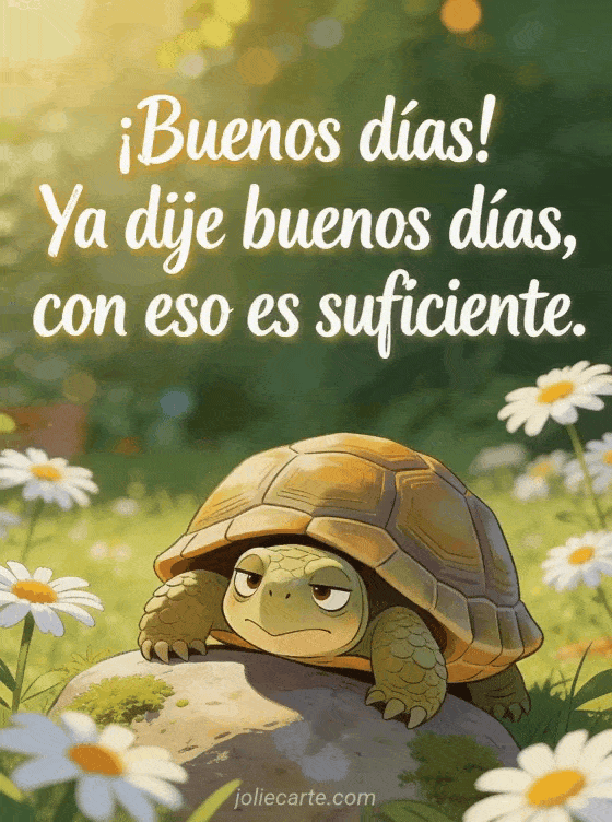 Empieza el día con estos gifs gratis de buenos días humorísticos con una tortuga que a duras penas dice buenos días. Mira también imagen graciosa buenos días o gif buenos días humor gratis.