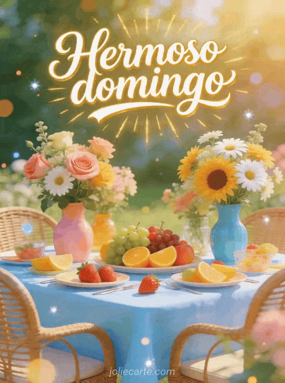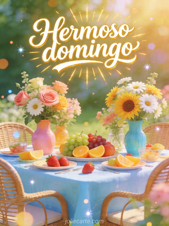 Comparte un hermoso domingo con esta tarjeta de brunch al aire libre llena de frescura y flores. Descubre también mensaje de feliz domingo, buenos días feliz domingo gif animado o feliz domingo lluvia.