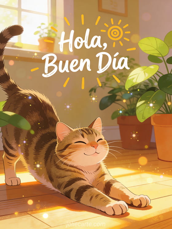 Envía un saludo luminoso y alegre con esta tarjeta gratis. Descubre también una tarjeta hola el gato o una tarjeta buenos días hola.