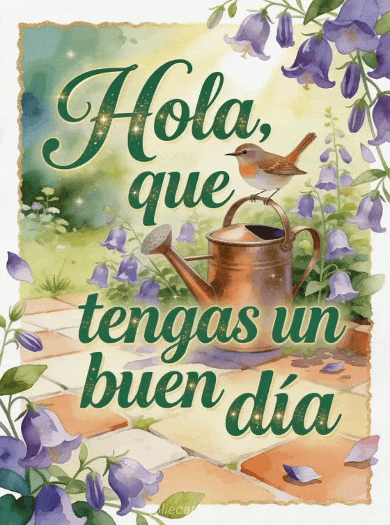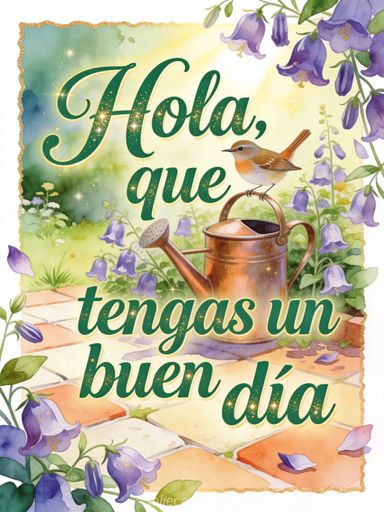 Compartan un hola fresco con letras esmeralda, campánulas sobre el borde y un ruiseñor cerca de una regadera de cobre sobre azulejos brillantes de jardín. También pueden enviar imágenes de hola buenos días, hola holaaa gif o hola besitos gif lindo.