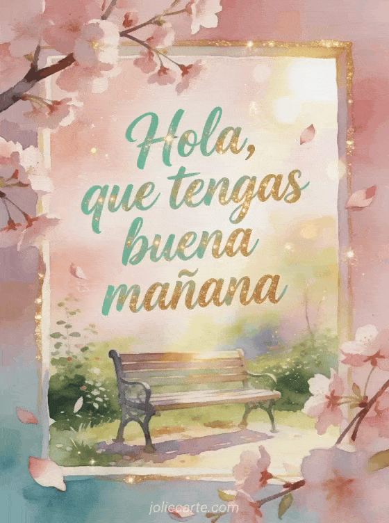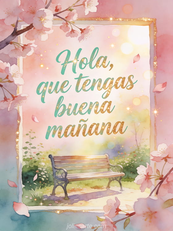 Ilumina el comienzo del día con esta tarjeta en acuarela, con pétalos de cerezo, ramas delicadas y un banco tranquilo de jardín. Descubre también oh hola, hola besos o besos hola.