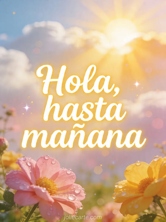 Envía esta tarjeta de hola hasta mañana para compartir esperanza y una despedida luminosa hasta mañana. Descubre también que tengas un lindo día hasta mañana, que tengas un lindo día y hasta mañana o imagen buenas noches y hasta mañana.