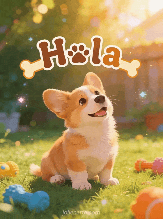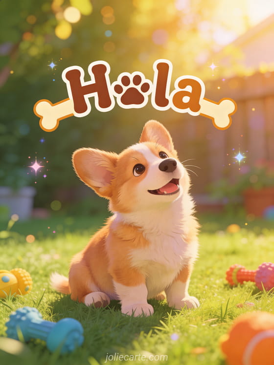 Hola perro una alegre y soleada tarjeta de hola con un adorable cachorro corgi con la cabeza inclinada