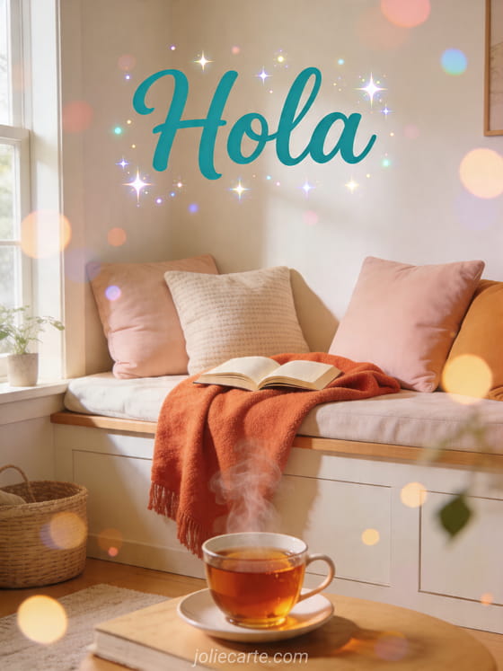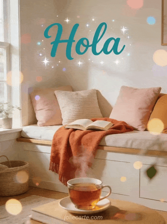 Comparte esta relajante tarjeta de hola con un rincón de lectura acogedor, cojines suaves, una manta cálida y una taza de té. También pueden descubrir hola mamá, sms buenos días amistoso y meme buenos días.