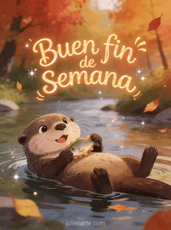 Comparte esta divertida tarjeta de buen fin de semana con una nutria juguetona flotando en el río, un pez y árboles de otoño. También pueden descubrir desear buen fin de semana con humor, buen fin de semana animado gif y un buen fin de semana.