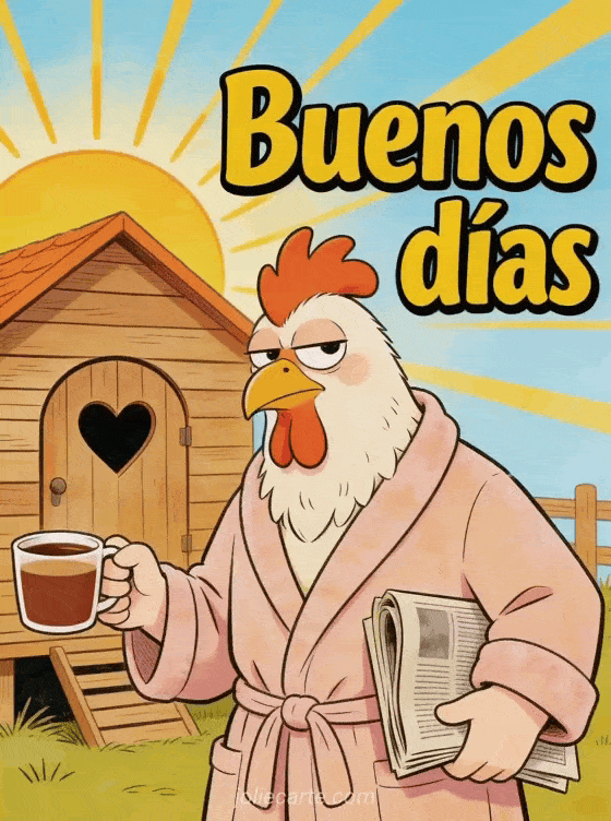 Empieza el día con una sonrisa y envía esta hilarante tarjeta de buenos días. Descubre también una tarjeta de buenos días gif gracioso o una tarjeta de león buenos días.