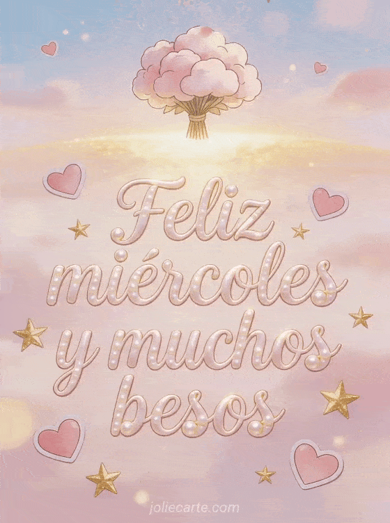 feliz miércoles y muchos besos un saludo cariñoso de miércoles lleno de corazones, estrellas y ternura
