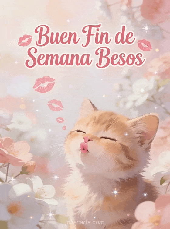 Alegra el fin de semana de alguien con este adorable saludo lleno de besos. Descubre también una tarjeta de fin de semana con humor, una tarjeta de buen fin de semana o una imagen de buen fin de semana.
