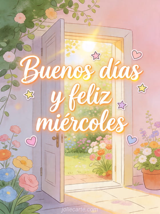 Comparte esta tarjeta gratis de Buenos días y feliz miércoles y envía un mensaje amigable en segundos. Personalízala en línea y descubre también gif de feliz miércoles, gif feliz miércoles humor y buenos días miércoles imagen.
