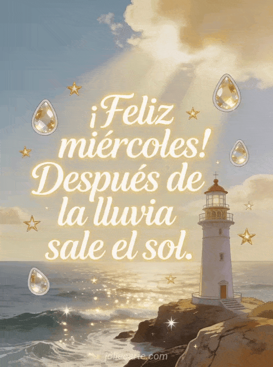 ¡Feliz miércoles! Después de la lluvia sale el sol. una frase inspiradora de mitad de semana junto al mar